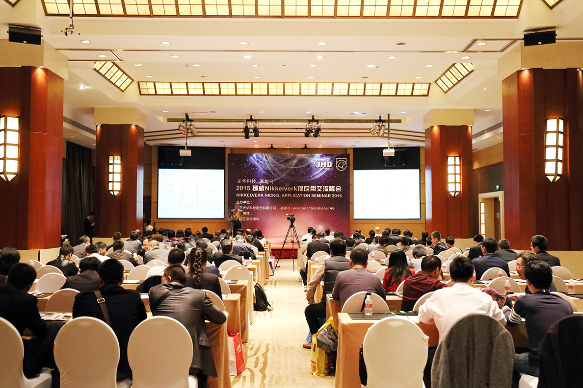 由光華科技和嘉能可聯合舉辦的2015挪威Nikkelverk鎳應用交流峰會于11月18日在上海世紀皇冠假日酒店隆重召開,旨在為上下游搭建一個面對面交流平臺。來自光華科技和嘉能可的技術及營銷代表做了關于基于電鍍鎳應用的配套產品及服務。
