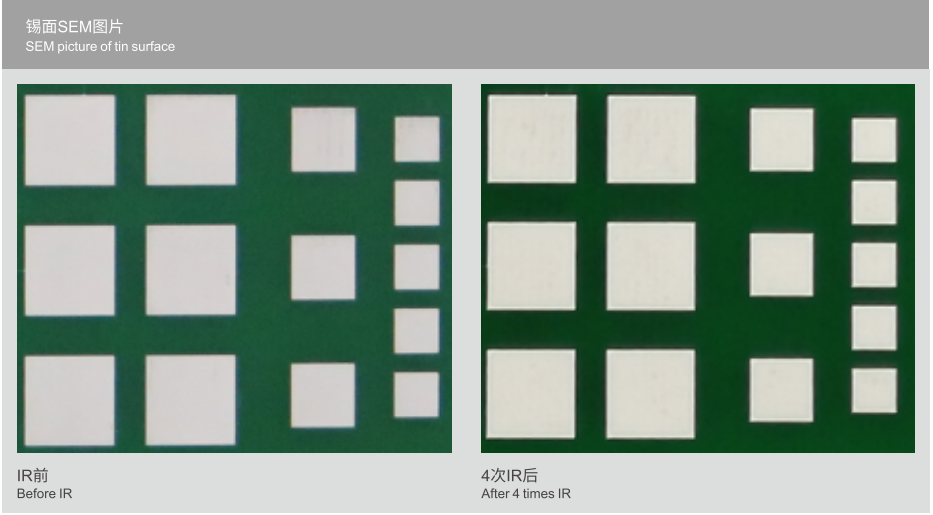 Through the change of chemical potential of copper ion, Sn2+ in plating solution is in replacement reaction with copper surface of PCB to generate silver white tin layer with thickness of about 1μm on copper surface; it is the most ideal process to substitute tin spraying. Immersion tin applies to fine-circuit and dense-circuit PCB as well as Press-fit plug-in technique, and is suitable for lead-free SMT, and meets the requirements for multiple welding. The process applies to horizontal and vertical line.